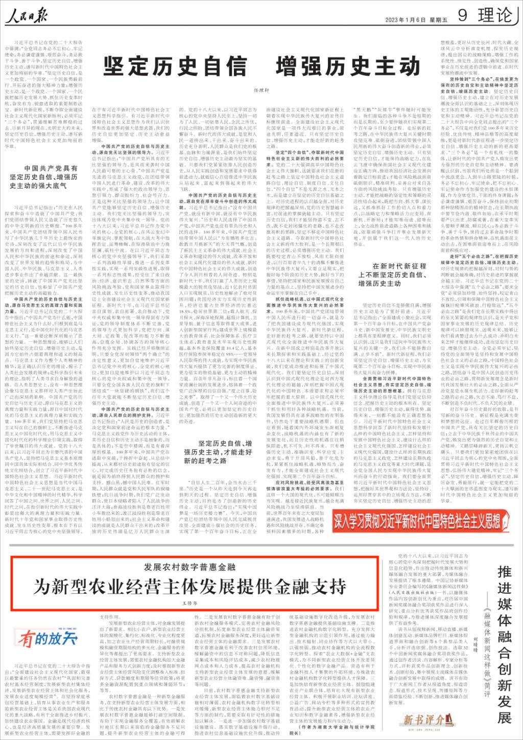 2023年1月6日, 韩漫 王修华教授在《人民日报》理论版发表文章“发展农村数字普惠金融 为新型农业经营主体发展提供金融支持”。