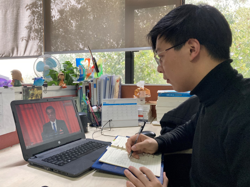 同学们在兼顾课程与科研之余,通过网络渠道密切关注着“两会”动态,共同学习、积极讨论“两会”精神,把握时代脉搏。