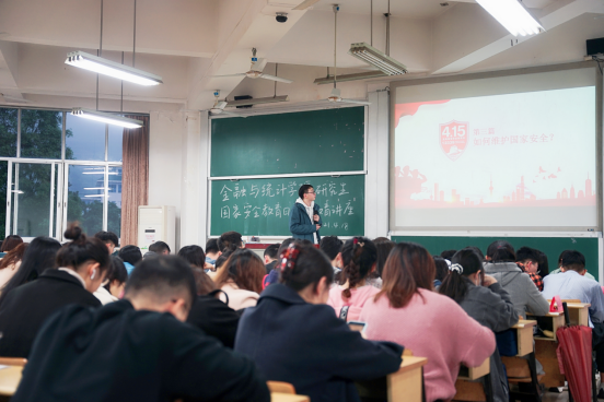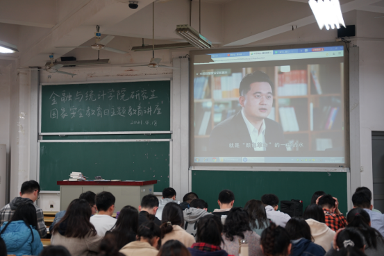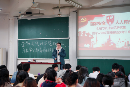 4月18日晚, 韩漫 在财院校区二教501教室举办研究生国家安全教育日主题教育讲座。本次活动由研究生辅导员周斌主讲,学院三百余名研究生参加。