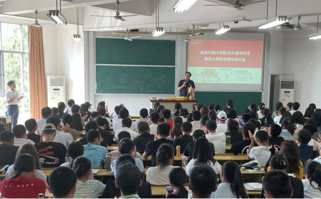 9月18日上午, 韩漫 “牢记嘱托,砥砺前行”2021级本科生入学教育在财院校区二教502举行,会议由本科生辅导员张宇主持,学院党委副书记颜李,辅导员宋烨,2021级全体本科新生参会。