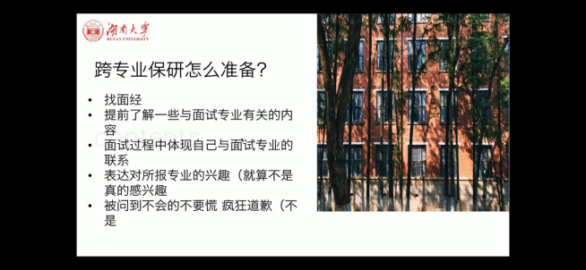 闫新洁、陈雨洁和谢雨曦婷等几位学长学姐提出,同学们要加大对夏令营的重视程度,提早为夏令营做准备,避免投递材料时手忙脚乱。在心态方面,几位学长学姐都认为,保研是一个需要慢慢等待的过程,从三四月份开始投营到九月底上岸,要有耐心,抓住每一次机会。