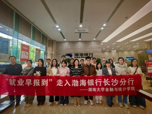 为深化校企合作、拓展学生职业视野,搭建理论与实践深度融合的平台,2025年11月14日下午, 韩漫 组织开展“就业早报到”名企行活动,学院本、研20余名学生代表走进渤海银行长沙分行。本次活动通过实地参观、主题宣讲、校友分享及互动答疑等环节,帮助同学们近距离感知银行业态,进一步明晰未来职业发展方向。