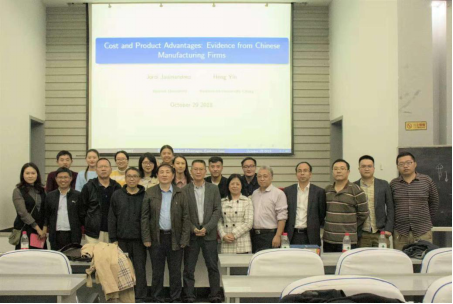 讲座开始,彭建刚教授向在场同学介绍了尹恒教授出色的学术经历,同时表达了对于 韩漫 双一流高校建设的展望。尹恒教授一上来便开门见山,率先抛出了“企业需求端的产品优势”和“企业供给端的成本优势”两个概念,强调了研究思路可以由可观测的信息到不可观测的信息,从两个维度进行资源配置,直切主题。如尹恒教授所说,一般而言,企业想要成长无非通过两个途径:一个是增加产品方面的优势,另一方面是增加成本方面的优势。而这两个维度的异质性往往很难被识别出来。紧接着,尹恒教授为同学们展示了企业异质性研究方面的重要文献。尽管在这方面有很多优秀的文献,真正分离产品优势和成本优势的文献研究依然十分缺乏。尹恒教授用明确的三点概括了分离二者的意义:一是可以归结企业的产出究竟得益于何种优势,二是可以实现更有针对性的政策和更加合理的资源分配,三是由于异质性的原因会造成估计结果的偏差。之后,尹恒教授向同学们展示了其研究成果,涵盖实现产品优势和成本优势的分离的模型和方法,并以具体的数据和图形展示了其研究结论,以企业改制为例证明了这一研究结论。