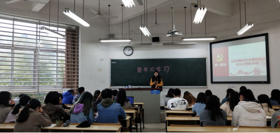 接着,年级长刘雪瑶同学带领大家观看了《习近平新时代中国特色社会主义思想思想三十讲》的有关视频,旨在让同学进一步了解习近平同志思想的具体内容。由于时间有限,大家集中观看了三十讲中和青年建设密切相关的第三讲——以及十三讲——。视频通过深入的讲解、鲜活的阐释,充分展现了习近平新时代中国特色社会主义思想的真理力量和思想魅力。