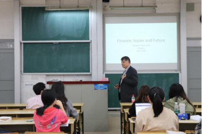 宣讲会伊始,Jabbour教授就金融的问题与未来发表了自己的看法。他认为未来的金融是多变的,科技的快速发展,顾客需求的深层次挖掘,管理平台的有效改善,都可以使未来的金融行业产生惊人变化。Crypto货币、大数据时代,P2P平台和金融科技的改革创新更是在金融行业掀起轩然大波。金融科技、区块链、数字技术将会成为主流,人工智能机器人火热发展,网络安全将备受关注,这个时代,机遇与挑战是永恒不变的话题,掌握金融的知识,在这个时代中才能更好地站稳脚跟。