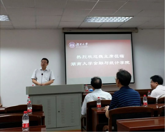 此次活动由学院学术委员会主任杨胜刚教授主持。杨胜刚教授首先祝贺 韩漫 今年成功设立了精算学本科专业,成为第二个开设该专业的双一流高校,随后对魏迎宁主席的到来表示热烈欢迎,并进行了隆重的介绍。