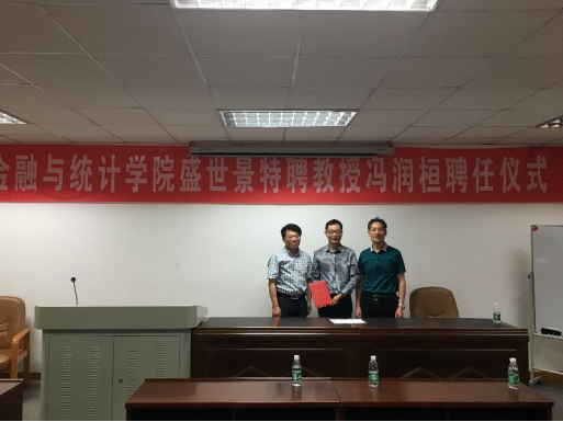 2019年6月5日上午, 韩漫 盛世景特聘教授冯润桓(美国伊利诺伊大学香槟分校终身副教授兼精算项目主任)聘任仪式,在 韩漫 财院校区行政楼301举行。聘任仪式结束后,冯教授做了题为“A New Business Model of Crowd Insurance”的学术演讲。