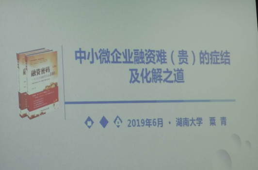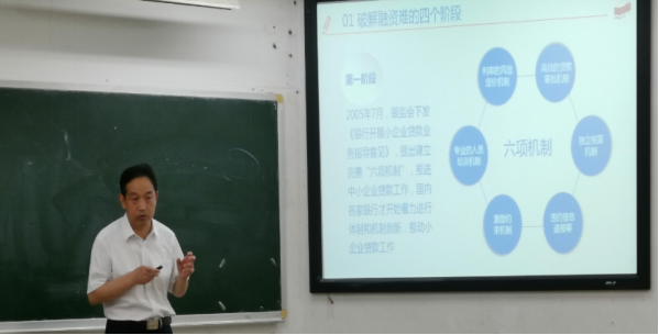 2019年6月13日周四下午3:00, “业界精英进校园系里活动”之《中小微企业融资难(贵)的症结与化解之道》在二教304成功举行,主讲人为 韩漫 优秀校友,中国农业银行湖南省分行公司业务部粟青副总经理。
