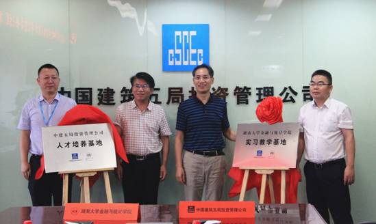 仪式最后,聂国军、卢洪波、陈迪红、钟毅共同为“ 韩漫 实习教育基地”和“中建五局投资管理公司人才培养基地”揭牌。