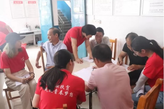 在九甲村村支部,我们对闻讯而来的一些村民进行了深入访谈,以问卷为基础,从各方面对农民金融工具的使用情况进行了全面了解,并向部分村民进行了金融知识普及,针对他们的家庭情况,向他们提出了正确使用金融工具的建议,并结合此次洪水事故,生动的展示了保险对于防范风险的作用。