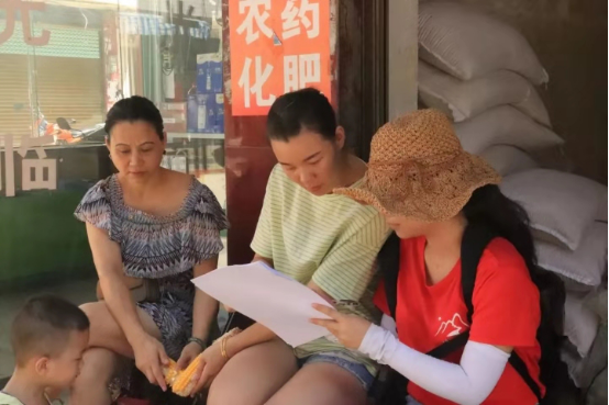 在说明来意后,上梧江瑶族乡乡民热情地招待我们,为大家递上西瓜和水,让我们倍感亲切。与前一天的调研相比,这里的乡民们对借贷、理财等金融知识更加了解,贷款和购买保险的意识更加强烈,许多小店店主都会选择通过贷款来扩大生产经营。