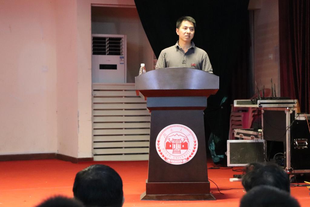 李承业同学作为高年级学生代表也分享了自己在大学生活中的经验。他认为大学是新的起点,同学们要尽快找到自己前进的方向,对生活保持好奇与热情,满怀伟大的情怀与抱负,以优秀学子为榜样,脚踏实地地走下去。他希望学弟学妹们在千年学府深厚校园文化的浸润中,真正做到“实事求是,敢为人先”。