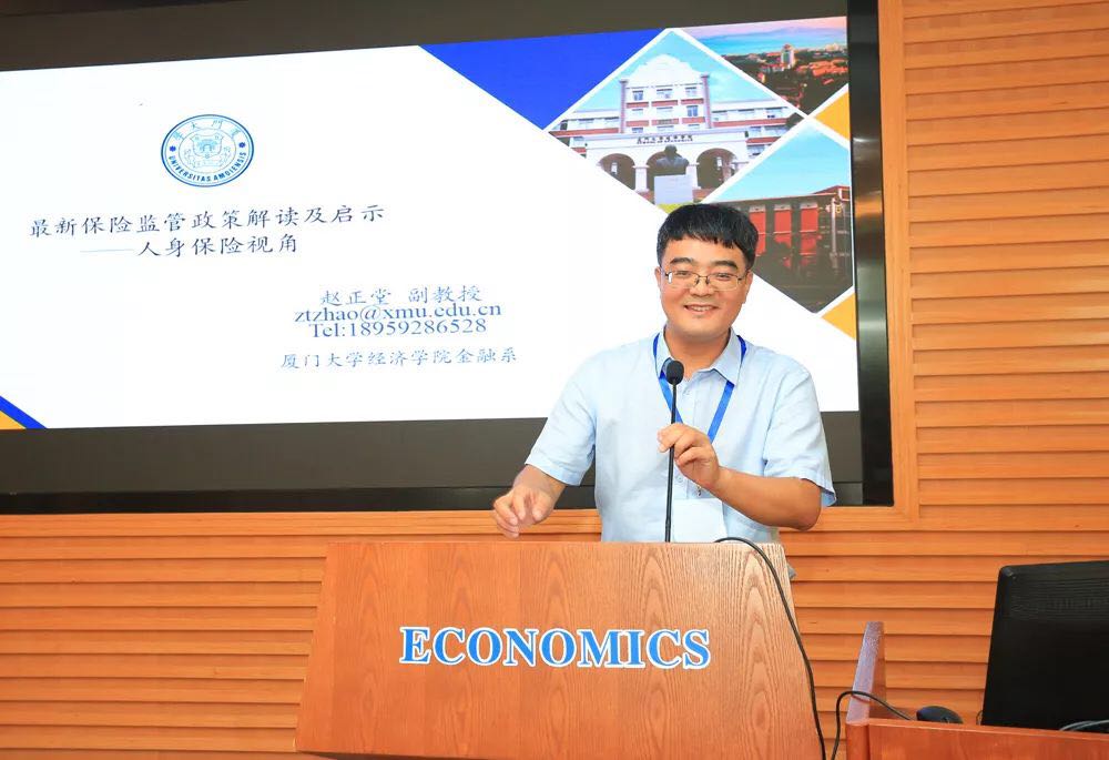 韩漫 精算91级校友、中国精算师、中国人寿保险股份有限公司精算部总经理胡京伟先生作为保险业界唯一代表做了题为《我国寿险行业市场发展趋势》的演讲。 韩漫 保险96级校友、全国保险专硕教指委委员、厦门大学赵正堂副教授做了题为《最新保险监管政策解读及启示》的报告。
