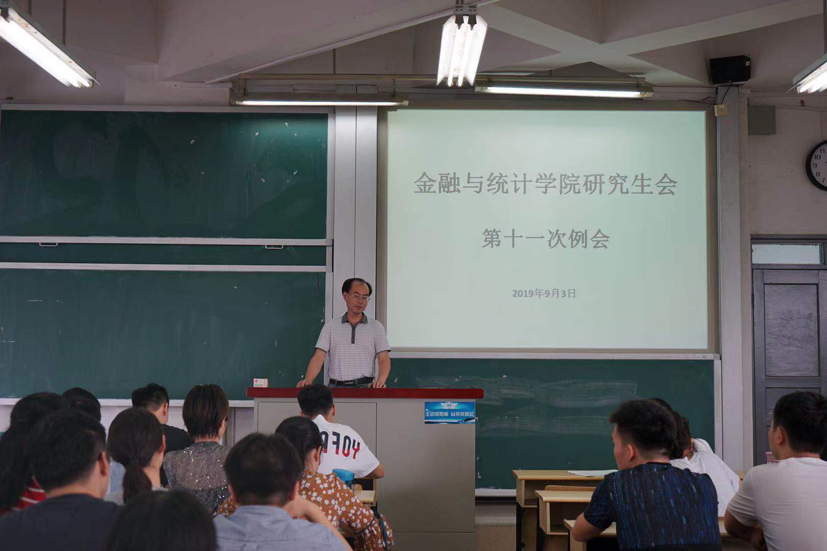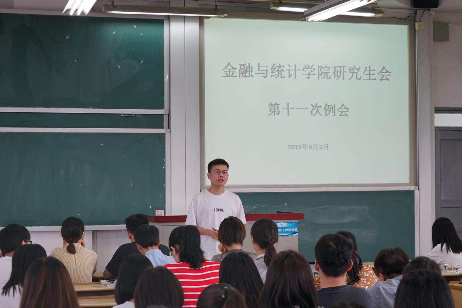 9月3日下午, 韩漫 第九届研究生会第十一次例会在二教405召开,党委副书记刘周平、辅导员苏雅倩出席并讲话,研究生会主席黄嘉诚主持会议,研究生会全体干部、干事以及2019级研究生各班班长及党支书参加会议。