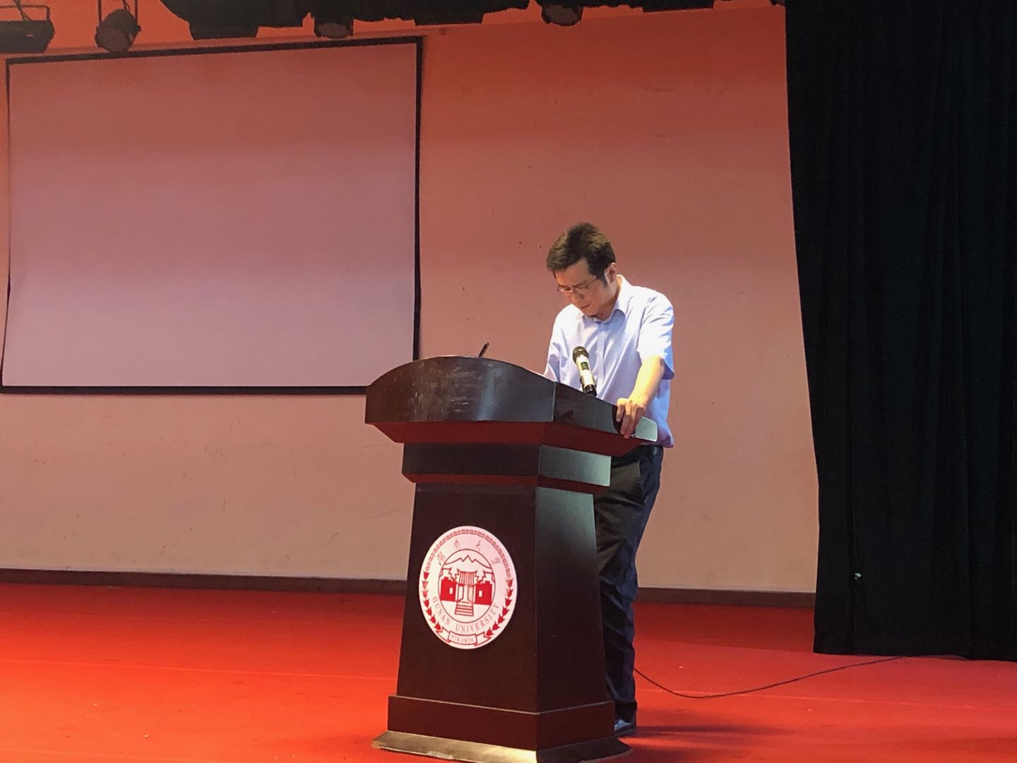 潘敏院长传达校暑期工作会议精神,他表示学院发展正处在一个关键时期,任务重、要求高、时间紧,每个老师都应发扬特长,为金统院的发展建设做出努力。