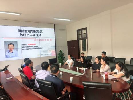 16日下午,风险管理与保险系2019-2020学年教研下午茶活动第一期,在 韩漫 财院校区红楼2栋326会议室举行。本次活动特别邀请了 韩漫 盛世景特聘冯润桓教授,大家围绕风险管理与保险系目前教研活动中可以改进和加强的地方展开了热烈讨论。