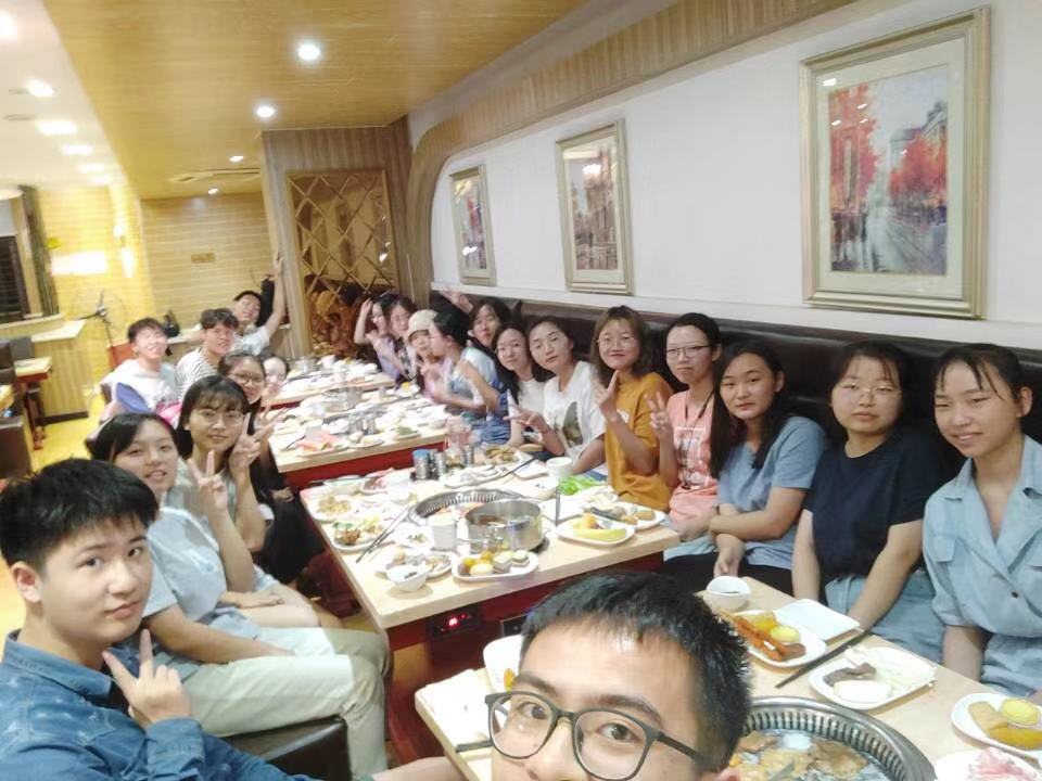 会议结束后,在班长和团支书的组织下,我们于当晚进行了班级聚餐团建。在火热的气氛中,同学们积极表达自己的想法、畅想未来,展现着湖大学子对建设祖国未来的抱负和自信。同时,也增强了班级的活力和凝聚力。在活动的最后,大家以“祝新中国70岁生日快乐”为结束语拍下了集体合照,也将我们金七对祖国的美好祝愿传向夜空、传向外界。