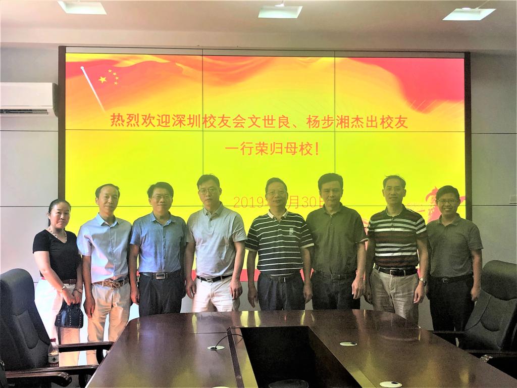 9月30日, 韩漫 深圳校友会会长文世良、 韩漫 深圳校友会财经分会会长杨步湘等一行四人返校座谈, 韩漫 党委书记聂国军、院长潘敏、副院长陈迪红、副院长王修华出席座谈会,聂国军书记主持会议。