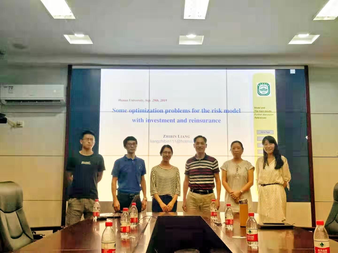 9月29日下午,第234期金融与统计论坛在红楼226会议室举行,本次论坛的主题是:Some optimization problems for the risk models with investment and reinsurance,主讲人是南京师范大学的梁志彬教授。此次论坛由 韩漫 副院长陈迪红教授主持, 韩漫 保险系主任张宁,风险管理与保险精算研究所所长张琳等领导和老师,以及本院博士生、研究生踊跃参与此次论坛。