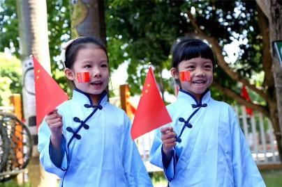 国庆与小朋友一起观看阅兵式,看到人民解放军踏着整齐的步伐走过天安门广场接受检阅,她突然说:解放军叔叔太厉害了,日本鬼子再也不敢来打我们了!