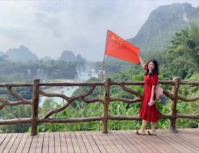 出行的人很多,景区的山水很美,游客们纷纷以瀑布为背景,和国旗合影,我也一样,只想在祖国最美好的山河下,将“我为我是中国人而感到骄傲”写在照片里。看着壮丽秀景,看着人潮涌动。