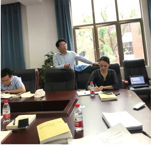 10月10日下午, 韩漫 党委领导班子“不忘初心 牢记使命”主题教育第二专题集中学习研讨会在红楼226会议室召开。院党委书记聂国军围绕“改作风、勇担当,带头真抓实干——加强政治建设提高党性修养”作专题辅导报告并主持会议,学院领导班子成员作心得体会交流。