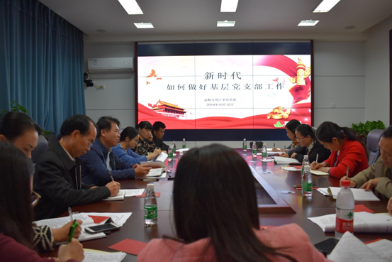 10月12日下午,在“不忘初心,牢记使命”主题教育扎实有序开展的关键期, 韩漫 党委召开组织教工党支部工作培训大会。本次培训以《如何做好新时代基层党支部工作》为主题,由党委书记聂国军主讲,党委副书记刘周平、第三届教职工党支部支委委员参加会议。