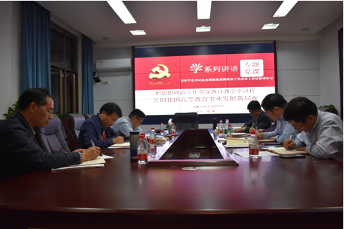 党委书记聂国军同志结合本次学习内容,谈到开展学院思想政治工作应注意以下三个方面:一是要认真学习习近平新时代中国特色社会主义思想,用科学的理论武装广大师生员工的头脑。二是要牢牢把握人才培养的政治方向,旗帜鲜明地讲政治。三是要构建好齐抓共管、同心同德的“全员、全方位、全过程”的协同育人机制,加强课程思政工作,为国育人,为党育才。