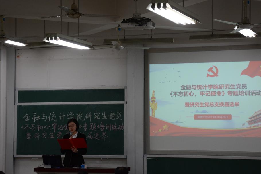本次会议分为两项议程,第一项是研究生党员《不忘初心,牢记使命》专题培训活动。
