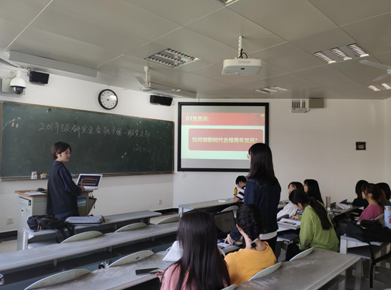 第三部分,党员谈如何做新时代合格青年党员。党支部的四名同志依次分享了关于教育视频以及关于初心与使命的所思所感。
