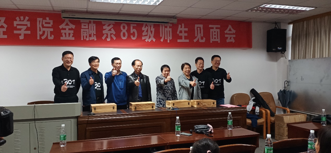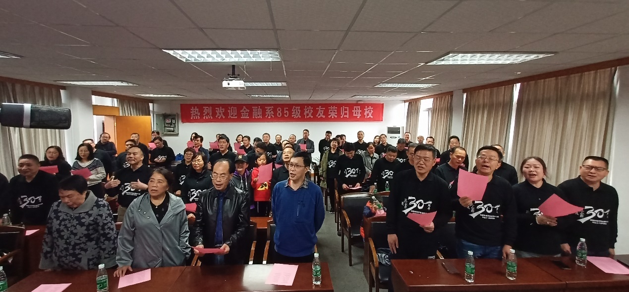 2019年10月26日上午,秋雨绵绵, 韩漫 财院校区迎来了金融系85级的校友们回归母校,门口崭新的横幅也在欢迎校友们的到来。