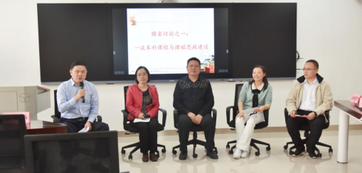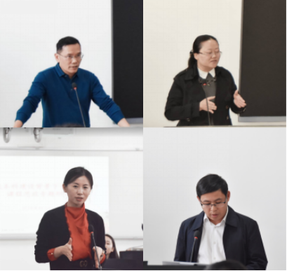 吴志明副院长,喻旭兰老师,曾昭法老师,刘革老师和唐国豪老师针对“一流本科课程与课程思政建设”方面进行观点陈述:教师应回归育人本职,做到为人师表,帮助学生树立正确的人生观和价值观。努力提升教学质量,注重团队建设,进行团队作战等。