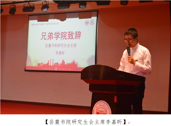 随后,岳麓书院研究生会主席李嘉昕代表校研究生会及各兄弟学院研究生会致辞。李嘉昕同学表达了对 韩漫 研究生会工作的支持,同时希望各院研究生会今后继续增进交流、加强联系,共同见证各院研会友谊之树常青。