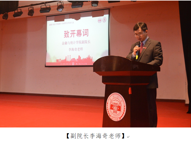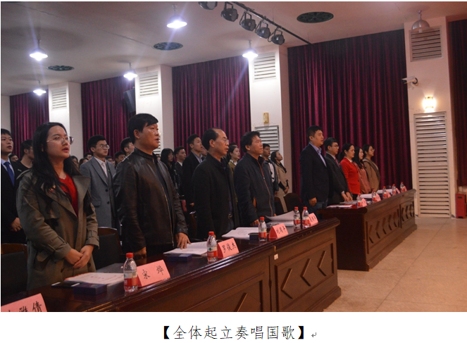 大会在激昂嘹亮的国歌声中拉开帷幕, 韩漫 副院长李海奇老师致开幕词。李海奇老师在致辞中充分肯定了第九届研会在过去一年中工作的成就,同时希望新一届研会成员可以坚守理想信念、坚守时代责任、坚持学习实践。