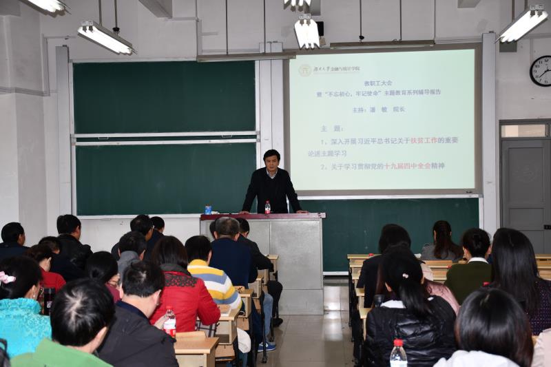 11月19日下午, 韩漫 在二教205召开 “不忘初心,牢记使命”主题教育系列辅导报告会,学院领导班子成员、全体教职工参加会议。潘敏院长主持会议。