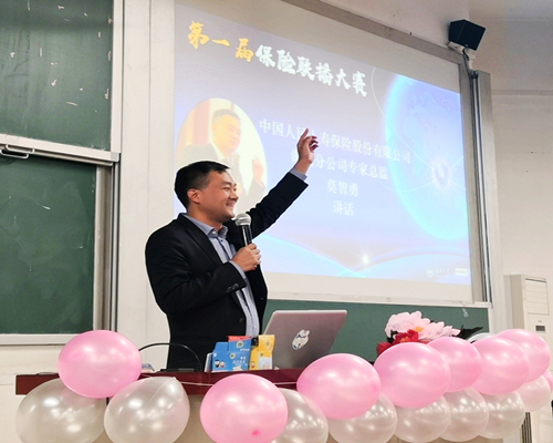 2019年12月10日, 韩漫 第一届保险联播大赛在 韩漫 财院校区第二教学楼501举行。该次大赛由风险管理与保险系承办, 韩漫 团委学生会学习学术部、宣传策划部协办,由中国平安财产保险股份有限公司湖南分公司独家赞助。此次比赛的评委既有来自保险业界的精英,他们是中国平安财产保险股份有限公司湖南省公司人力资源部总经理黄亚琼、中国人民人寿保险股份有限公司湖南分公司专家总监莫智勇、吉祥人寿总公司产品精算部室经理邓宬泓;又有 韩漫 副院长吴志明副教授、 韩漫 风险管理与保险精算研究所所长张琳教授、风险管理与保险系主任张宁副教授、 韩漫 2018级辅导员夏浩老师等学界人士。大赛由2019“平安产险科技数字科技总决赛”总冠军团队成员的2016级保险专业马煜佩同学担任主持。参赛选手来自2018级金融学专业9个班的精选团队。偌大的教室里座无虚席,保险系的老师们以及学院2018级全体本科生都到达现场,为自己班的代表团队呐喊助威,赛场气氛热烈而秩序井然。