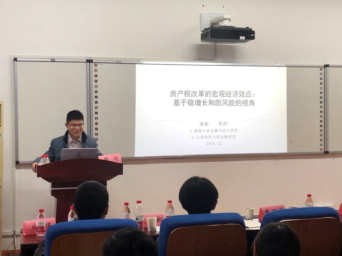 江西财经大学周闯助理教授进行了《房产税改革的宏观经济效应:基于稳增长和防风险的视角》的报告。本文聚焦当下热议的“房住不炒”,要求稳妥推进房产税立法的实际背景,从长期视角模拟了房产税改革对“稳增长”的宏观效应,又从短期视角考察了其对防范系统性风险的影响;比较分析了不同房产税改革方案的稳增长和防风险效果,特别是将房产税改革置于当前防范系统性风险的背景之下,考察了其对防范化解系统性风险可能带来的影响。