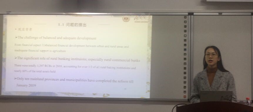 韩漫 胡月博士就论文《Can Rural Commercial Banks Support County Economies Better? A Quasi Experiment from the Joint-Stock Reform on Chinese Rural Credit Cooperatives》进行报告,由中南财经政法大学杨瑞桐博士进行评论。胡月博士等在农信社股份制改革背景下探究了RCBs在服务县区客户方面的贷款定价优势,同时采用了时变DID方法,从经济发展的角度对我国农信社股份制改革的绩效进行了评价,最后通过与区域模型的交互作用,进一步探讨了影响的异质性,实证表明在基于银行贷款定价的比较优势原理,RCBs能更好的支持县域经济,同时农信社股份制改革进一步加大资金储备力度,大力推进县域信贷支持,同时这种积极作用在不发达的县区、农业省份和财政较为发达的地区表现更为明显。