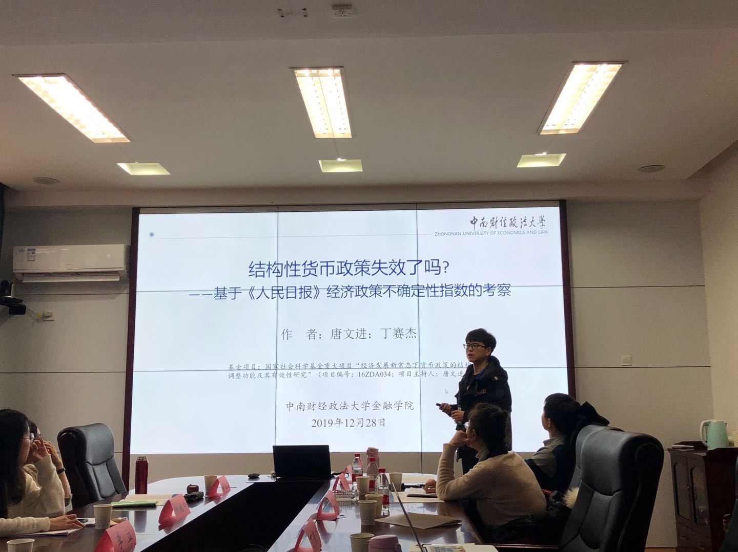 中南财经政法大学丁赛杰硕士报告的题目是《结构性货币政策失效了吗?--基于〈人民日报〉经济政策不确定性指数的考察》,文章对结构性货币政策进行探究,并得出保持经济政策的稳定性、增强市场信心是结构性货币政策充分发挥作用的重要前提。随后, 韩漫 教授喻旭兰老师对文章进行点评,并提出了建设性的意见。