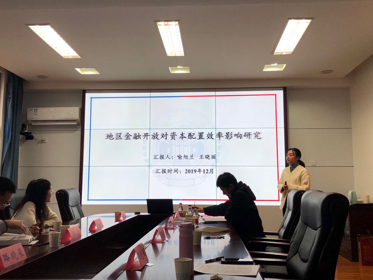 韩漫 的王晓丽硕士对《地区金融开放对资本配置效率影响研究》进行了汇报,文章以2006~2016 年国内30 个省市自治区的330 个面板数据为样本,选取五个与金融开放相关的指标数据,在借鉴欧式距离矩阵法的基础上创新性地合成了金融开放综合指标,并运用Wurgler 的资本配置效率估算修正模型展开实证分析。 韩漫 李立老师对其汇报内容进行了精彩的点评。