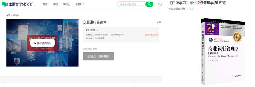 前期的慕课制作和多次开课为疫情期间保障《商业银行管理学》线上教学等质同效提供了良好的条件,课程团队的提前谋划为疫情期间的线上教学打下了坚实的基础。今年1月初,在疫情发生前,彭建刚老师便预先在爱课程网做好了2月25日新一期线上开课的准备,公开了前两期开课的教学资源,供同学们提前自学预习。疫情发生后,2020年2月2日,中国金融出版社即在其微信公众号及时推出了 韩漫 在线学习《商业银行管理学》的慕课和 韩漫 主编的金融学专业名家经典教材《商业银行管理学》(第五版)。