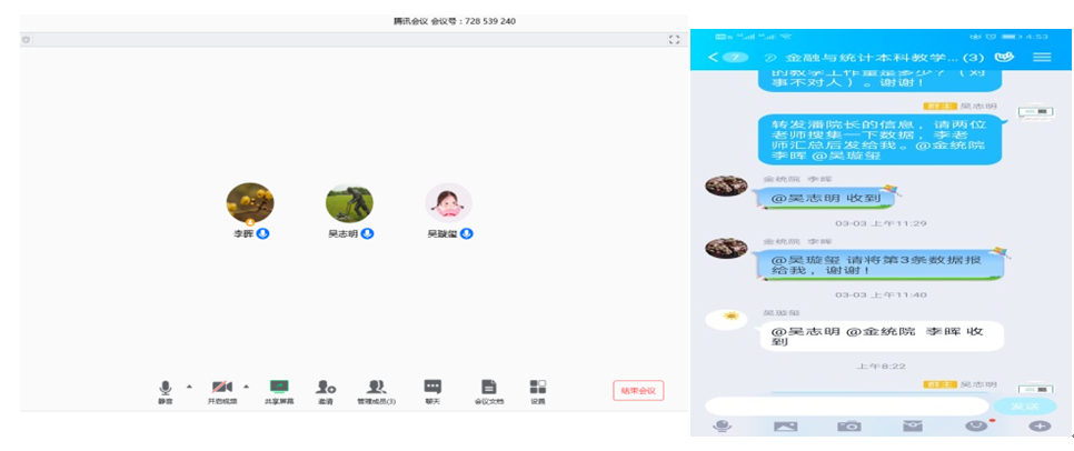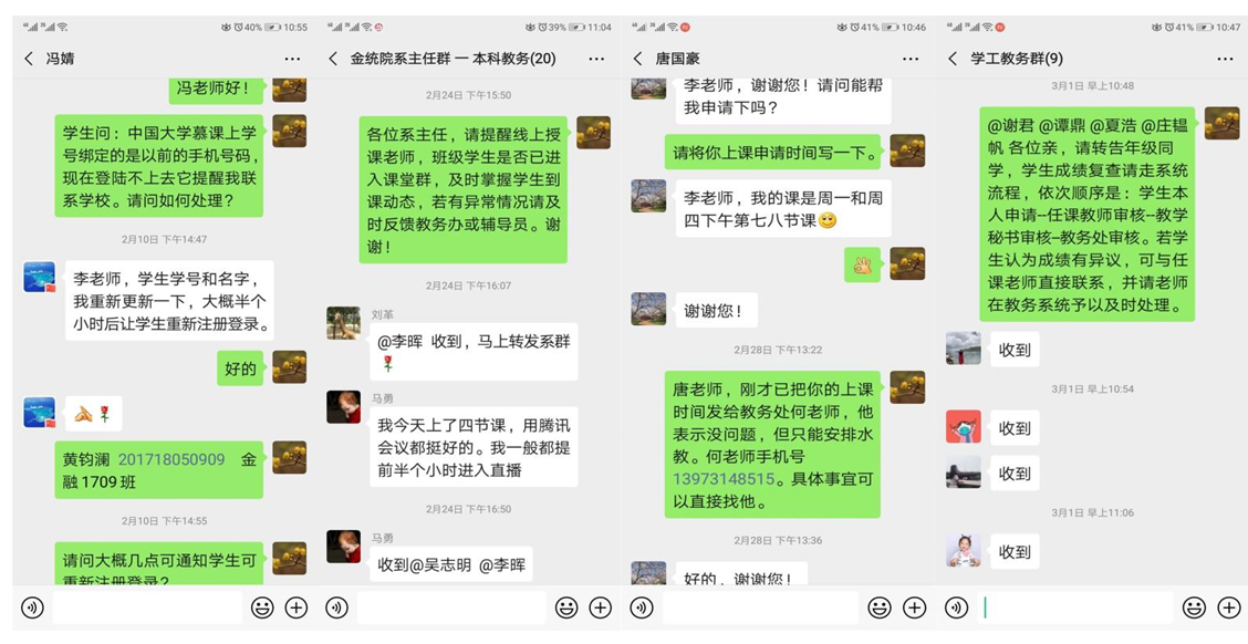 自1月30日开始,团队积极组织学院老师参与教务处组织的各类在线教学平台讲座。重点与学堂在线(雨课堂)、超星(学习通)等在线学习平台沟通交流,为给学院教师提供更好在线技术支持服务平台,熊晓鸽奖教金获得者、校优秀教学秘书、院本科教学管理办公室主任李晖老师主动搭建金统院在线学习交流群。