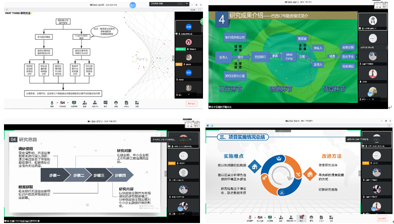 线上答辩会分别为两大组,共有19个项目通过申请获得第一次结题答辩资格。下午两点,答辩正式开始。在评委老师阐明答辩要求后,各小组依次有序答辩。项目负责人首先用1分钟的时间进行证件展示和成员分工简介,然后用5分钟通过屏幕共享PPT展示方式介绍项目背景、实证分析和研究结果等内容;在发言人汇报结束后,各评委老师在肯定小组这一、两年来的辛苦付出和取得的成绩的同时,就项目研究内容、行文逻辑、实证分析等向该组同学进行提问,对其中存在的明显不足提出具有建设性的修改意见。大多数项目负责人都能流利地作答,但也有少部分同学准备不是那么充分,就由小组其他成员来补充回答,答辩会在这一问一答中显得更加精彩纷呈。其中,有不少小组将其研究成果发表在期刊杂志上,获得评委老师们的肯定和表扬。