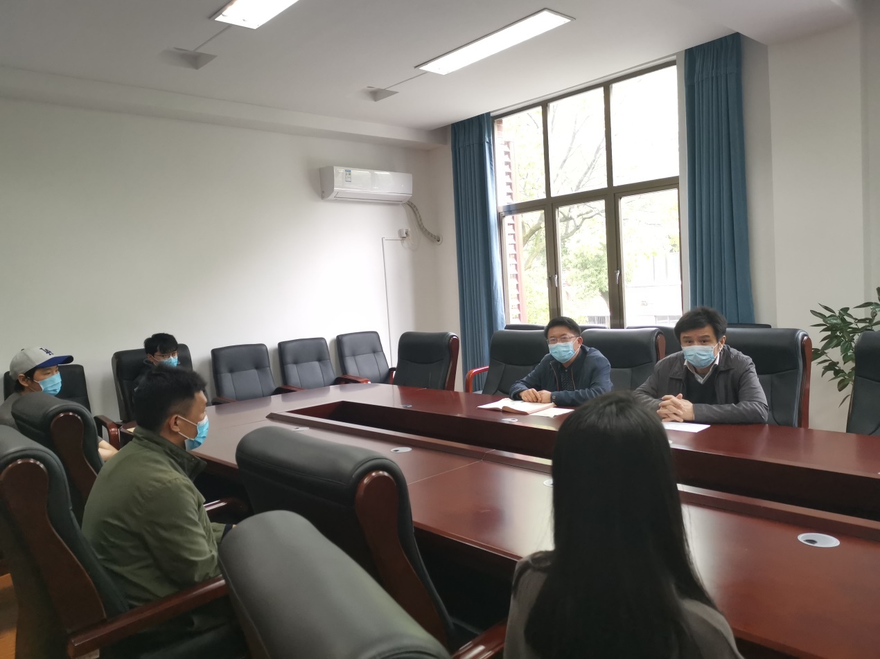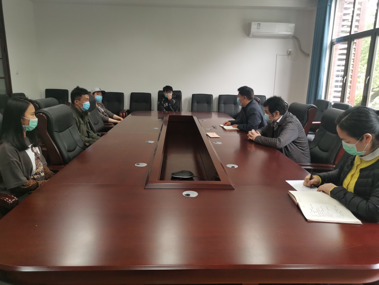 4月23日, 韩漫 召开留校本科学生座谈会,党委书记聂国军、院长潘敏、辅导员谢君、庄韫帆和四名留校学生参加会议。