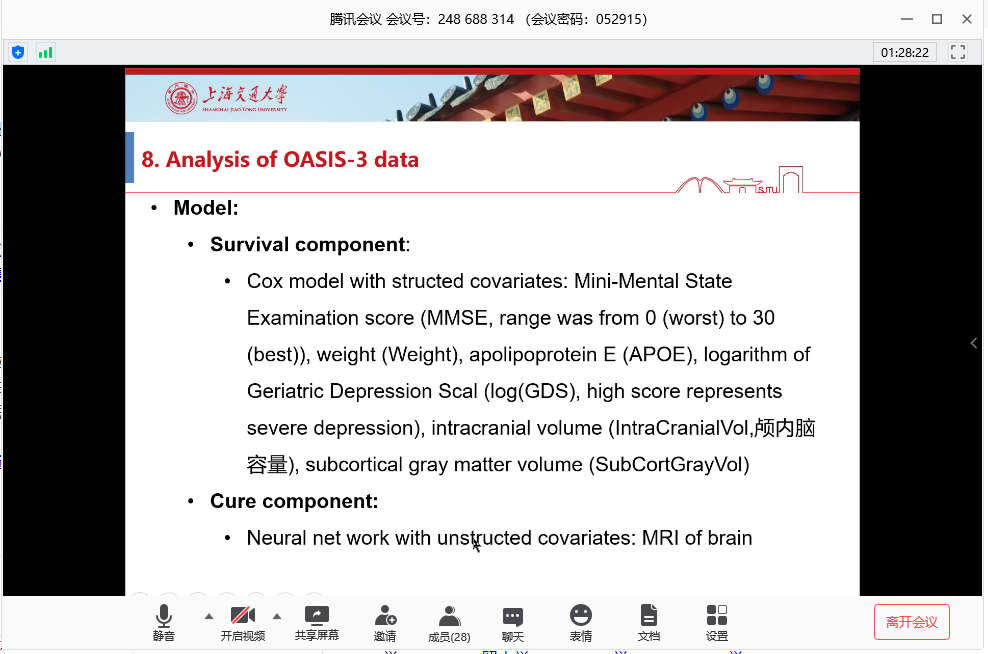 最后俞教授回答了统计学系王小燕、毛善俊和谭发龙等师生关于治愈率模型的提问,并邀请统计学系对生物医学统计感兴趣的老师和学生到上海交通大学进行学术交流和访问深造。