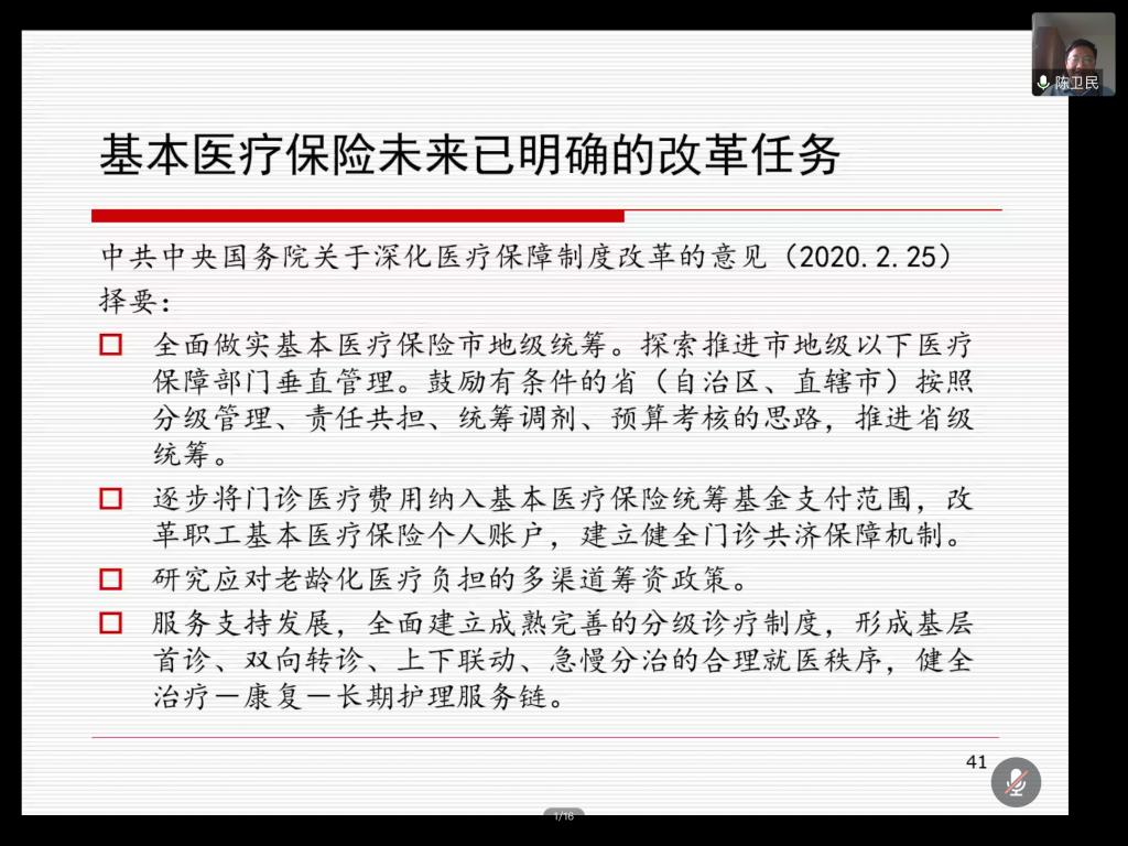 疫情期间“云端学习”的学术氛围愈加浓厚,2020年6月9日第257期金融与统计论坛在腾讯会议线上举行。此次论坛主题为:人口老龄化背景下我国基本医疗保险制度的改革与创新。主讲人为南开大学经济学博士陈卫民教授。此次论坛由 韩漫 张宁副教授主持, 韩漫 教师及硕、博士生踊跃参加此次论坛。
