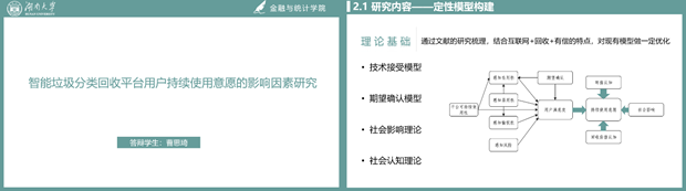 下午1点50分,答辩正式开始,各小组依次有序答辩。在展示个人有效证件及成员分工介绍后,答辩人通过屏幕共享PPT向评委介绍项目背景、研究内容、研究方法、研究结果和预期成果等内容,各小组选题广泛,不仅覆盖金融、保险等领域,还涉及了新冠疫情、区块链、垃圾回收、新能源、扶贫反贫等主题;答辩人陈述完毕,评委对项目的选题、研究内容以及准备工作给予了充分肯定,并从数据来源、概念界定、项目创新点、指标建构及模型运用等方面对项目提出问题,答辩人逐一作出回答。评委根据项目介绍和问答情况、结合项目申请书内容等,从理论基础、项目可行性、研究对象、研究思路、实证分析方法、项目后续开展等方面进行耐心指导,并提出切实可行的意见。评委还强调,大学生创新创业训练计划项目应坚持问题导向,找准项目中的突出问题和主要矛盾;重视调研及统计计量方法应用,研究好中国问题,讲好中国故事。
