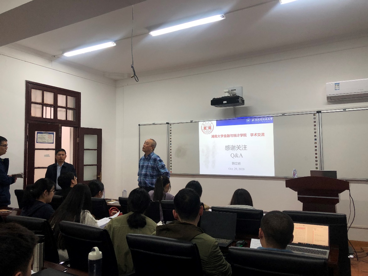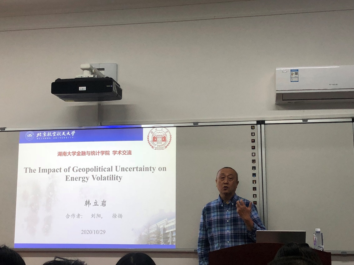 2020年10月28日,由 韩漫 主办的第288期金融与统计论坛在 韩漫 财院校区3号楼210顺利举办。本次论坛邀请北京航空航天大学经济管理学院韩立岩教授担任主讲人,由王修华副院长主持,韩立岩教授就“地缘政治与能源期货”这一主题为学院师生带来了一场精彩的学术报告。