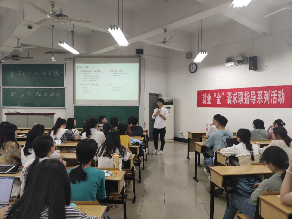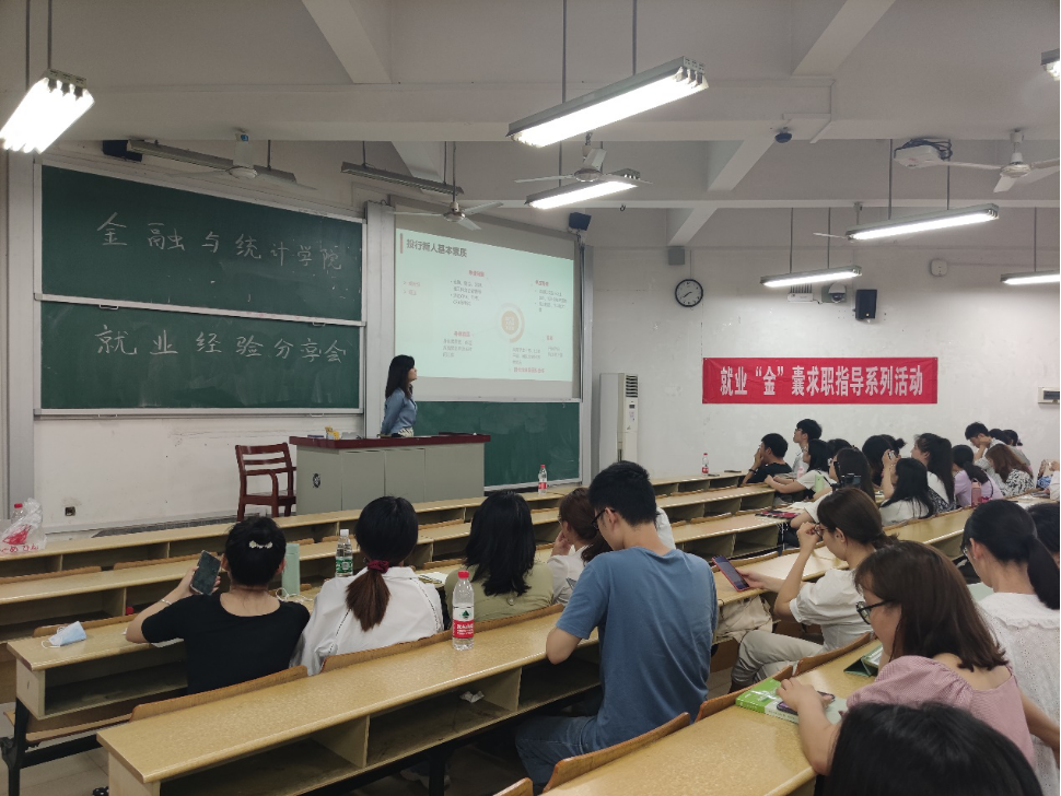 6月7日晚, 韩漫 就业“金”囊求职指导系列活动之毕业研究生就业经验分享会在第二教学楼501举行,并在腾讯会议同步现场直播,研究生辅导员周斌主持,全体研究生参会。本次分享会邀请到了四位2021届优秀毕业研究生,他们分别签约于高校、券商、科技企业、金融主管单位等不同岗位。
