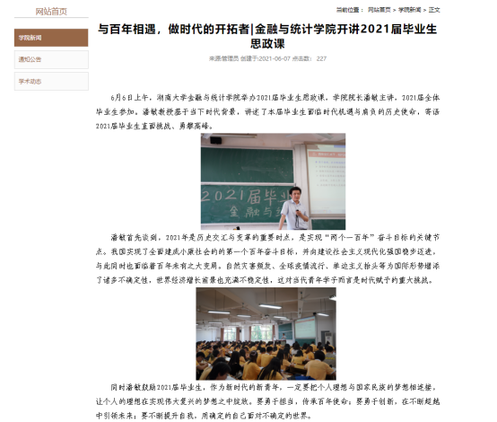 组织毕业生深入学习党史、校史,通过邀请潘敏院长讲思政课和黄红立书记讲党课,引导毕业生爱党爱国、厚植家国情怀。